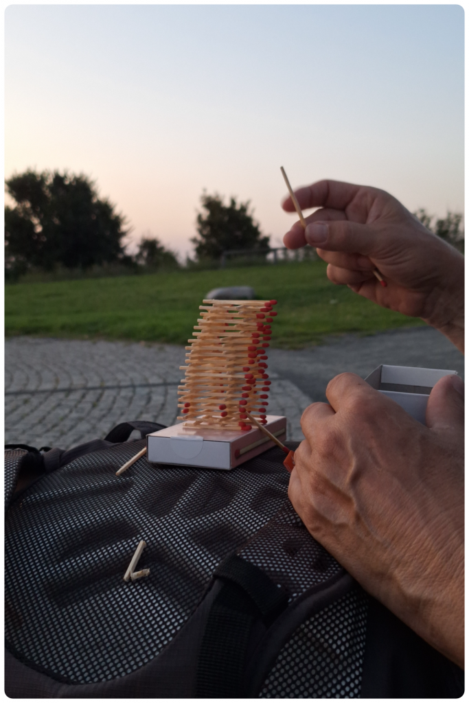 „Was ist denn da drin?“ Neugierig kommt auch der Imbissverkäufer im Waldidyll zum Tisch und lugt uns über die Schulter. Wir vier Skater*innen konnten nicht anders als zu den Bratwürsten – zum Überdruss von Johanna mit Curryketchup – noch eine der angepriesenen Überraschungsboxen zu kaufen.