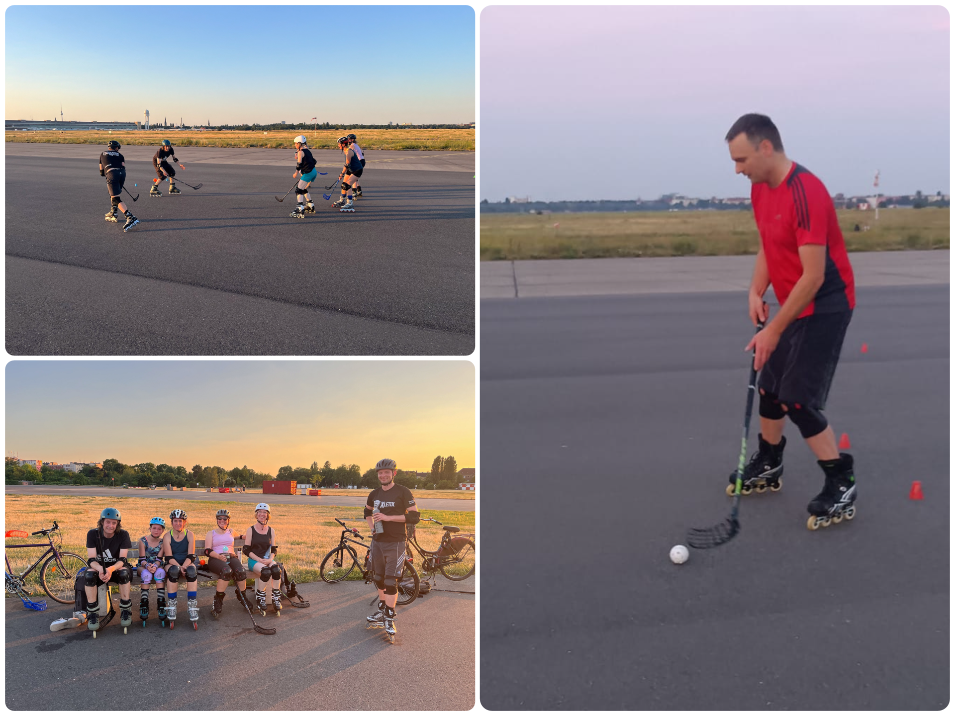Und unsere Inline-Floorball-Gruppe war auf dem Tempelhofer Feld aktiv und stiftete vorbeikommende Skater- und Skaterinnen an, mit ihnen zu spielen.
