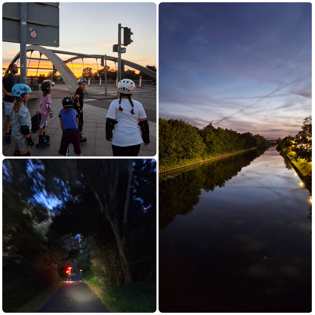 Unsere Kindergruppe machte während der Trainingszeiten einen kleinen Ausflug an der Ostkrone.  Die Erwachsenen taten es ihr nach – mit einem Abstecher zum Skateplatz in Johannistal und in der Dämmerung zurück am Teltowkanal.