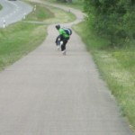 Pfingsskaten-2016_06Und dort war es noch nicht genug! Während ich in Kolzenburg, beobachtet von staunenden Kühen, über Wiesen hüpfte, Kaninchenfutter pflückte und Katzen streichelte, brachen die fantastischen Vier zur erneuten RK2 – Runde auf. Das Ziel 12 km in einer halben Stunde wurde nur marginal um 15 min. verfehlt. Der Jugendwart zog in Betracht, die Strecke erneut zu fahren, um die Zielvorgabe allein zu erfüllen, wurde daran aber gewaltsam gehindert. Gesamtstrecke der fantastischen Vier: 58 km – der ein oder andere auch ein bisschen mehr durch emsiges Voraus- und wieder Zurückfahren. Zusatzpunkte wurden für akrobatische Einlagen und mehr oder minder gekonnten Limboversuchen vergeben.