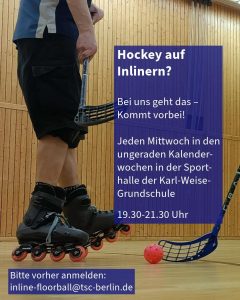 Wer: Wer Lust hat, soll einfach vorbeikommen oder sich ansonsten bei Jens und Alex (inline-floorball@tsc-berlin.de) melden.