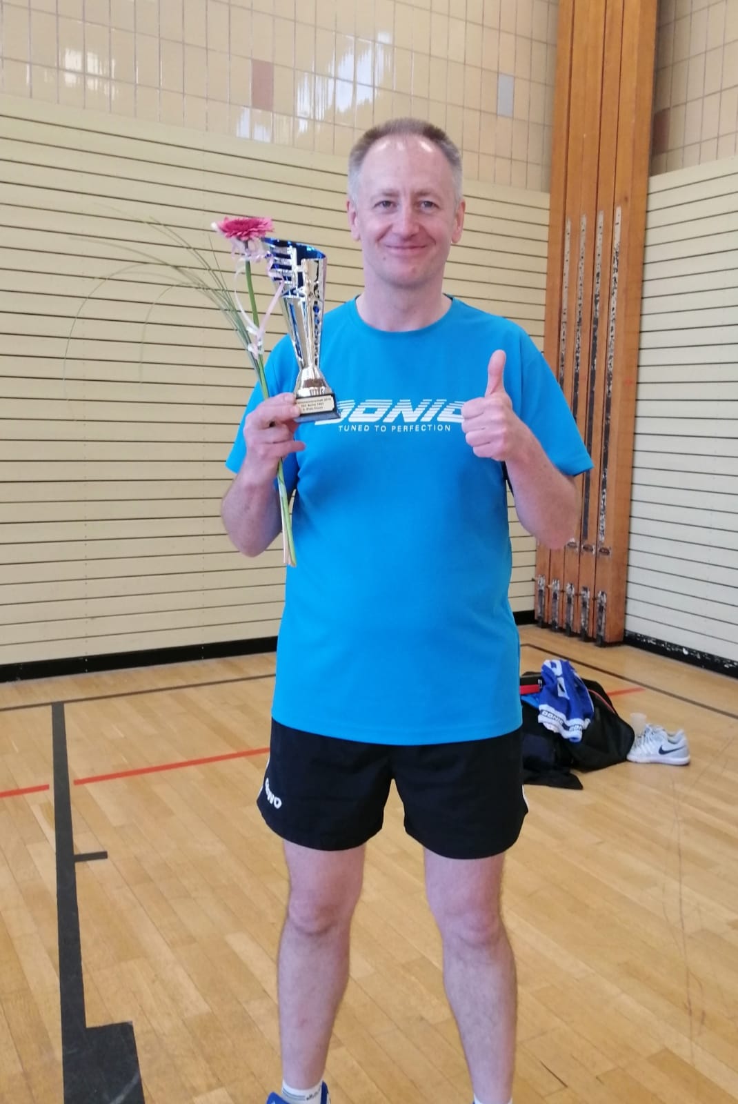 Im Finale kam es dann erstmals seit 10 Jahren zum Spiel der Nr. 1 und Nr. 2 des TSC. Thommy gewann Satz 1 deutlich. Benni ließ sich aber nicht beirren und steigerte sich. Thommy konnte nicht an den ersten Satz anknüpfen. Benni sicherte sich nach 2018 erneut den Titel im Einzel. Im Spiel um Platz 3 gewann Hendrik gg. Batu 3:1, der nicht mehr die Trefferquote aus dem Runden zuvor auf den Tisch brachte.