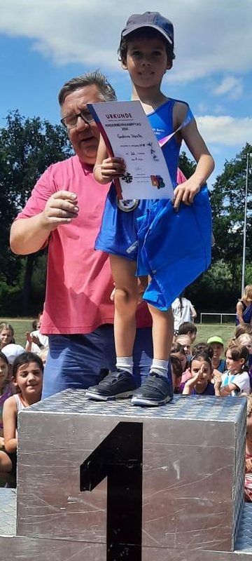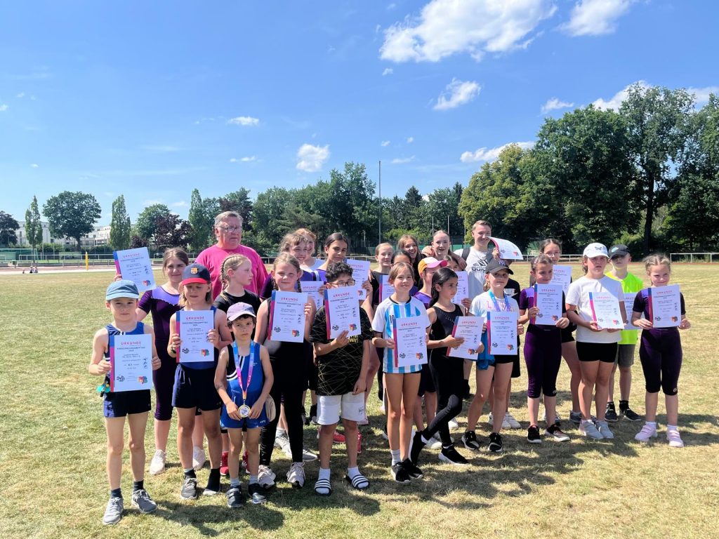 Am 29. Juni 2024 fand der Kindermehrkampftag auf dem Gelände des SC Siemensstadt statt. Ca. 250 Kinder in 28 Riegen im Alter von 5 – 13 Jahren lieferten sich bei herrlichem Sonnenschein einen spannenden Vielseitigkeitswettkampf in den Sportarten Turnen (Reck & Boden), Leichtathletik (Sprint & Weitsprung) und Schwimmen (25/50m Freistil).