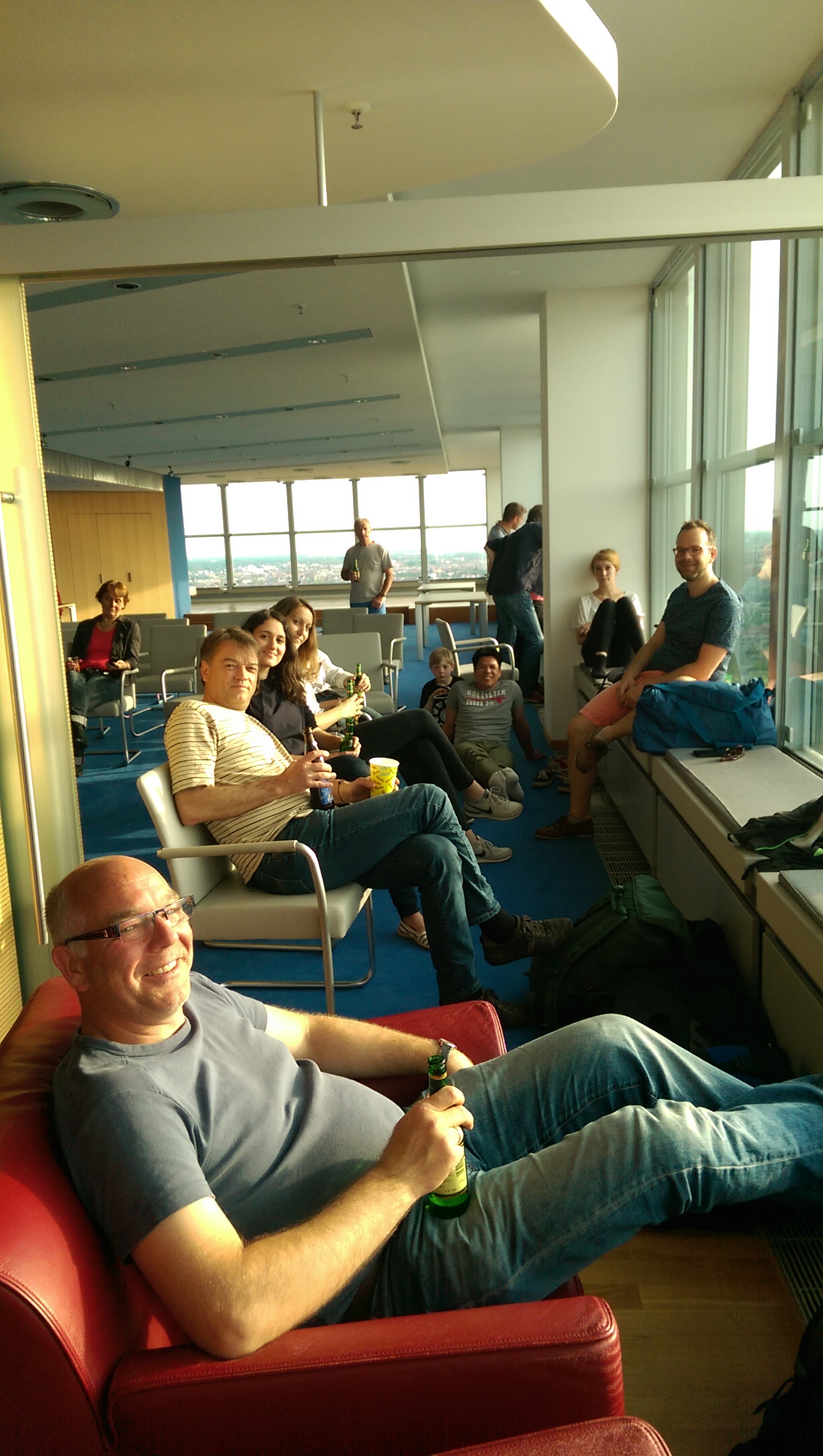 In der schönen Flatow-Halle spielten wir uns dann auf Rang 6 von 10. Wir hätten durchaus Vierter werden können. Dann haben wir es uns aber wieder einmal selbst schwer gemacht. Dennoch hatten wir viel Spaß wozu auch die relaxte Atmosphäre und die gute Verpflegung beitrugen. … Sowie die Vorfreude auf die anschließende Party im 30. Stock des Allianz-Towers an der Elsenbrücke inkl. des gigantischen Ausblicks.